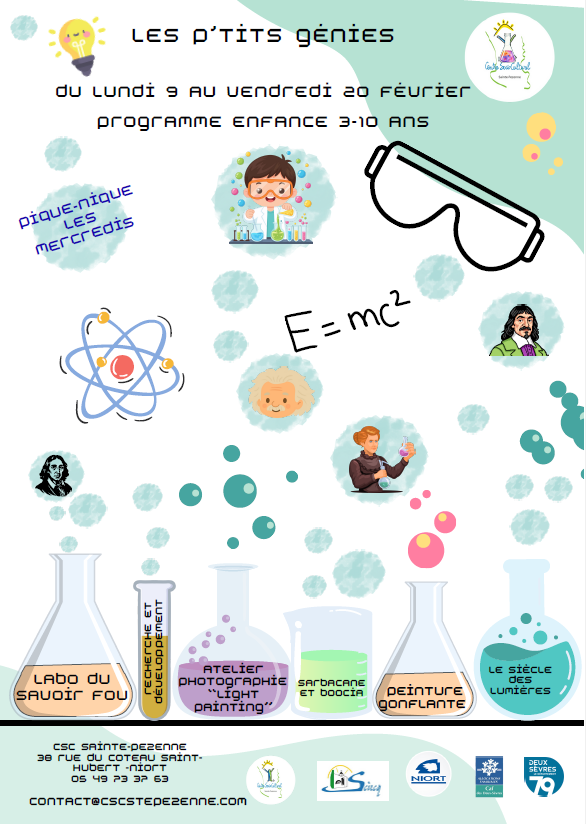 Les animations sur le thème « Les petits génies » seront proposées. Le planning sera évolutif et construit avec les enfants.